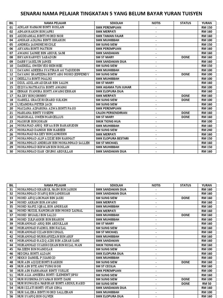 Serta contoh nama anak. Senarai nama pembayaran yuran universiti tanta 201516 januari 2016 sehingga 30 april 2016. Senarai Yuran Tahunan 2022.